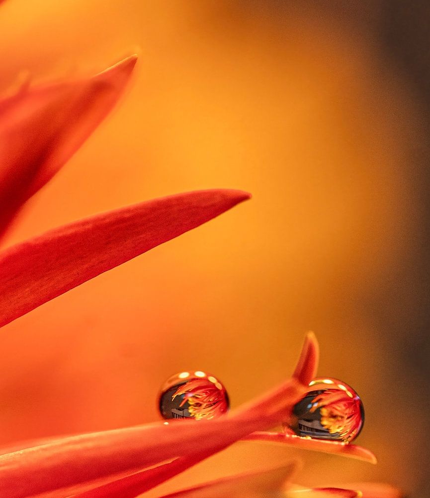 Dieses Foto ist eine Makroaufnahme von roten Blütenblättern und Wassertropfen.