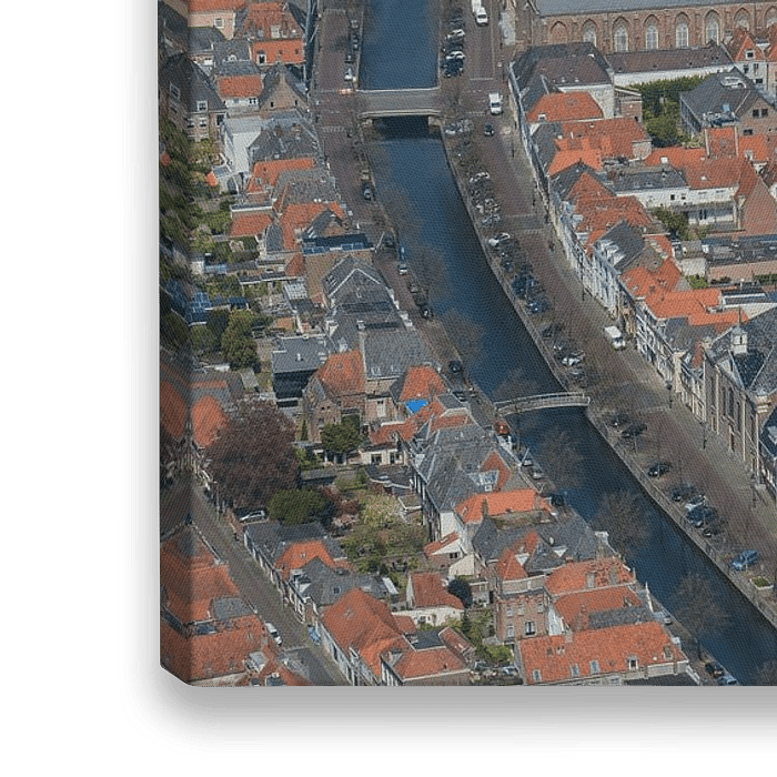 Die Stadt Kampen an der Ijssel aus der Luft mit der Stadtbrücke und Bürgel (Kanal) gesehen im Zentrum des Bildes. Darüber hinaus werden einige Schiffe auf IJsselkade und dem Stedelijk Museum und das Alte Rathaus neben dem neuen Turm zu sehen .