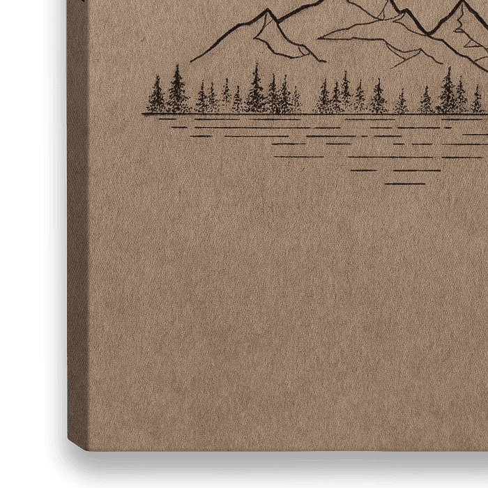 Eine einfache Illustration einer Berglandschaft im Mondlicht, erstellt mit Finelinern auf Kraftpapier.