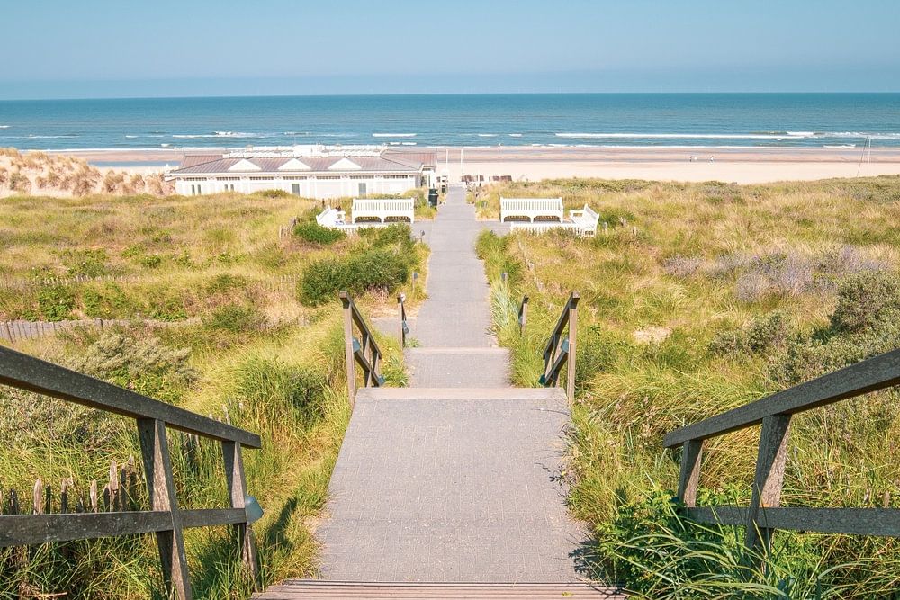 Der Blick von der Treppe über den Strand von Noordwijk und die Nordsee