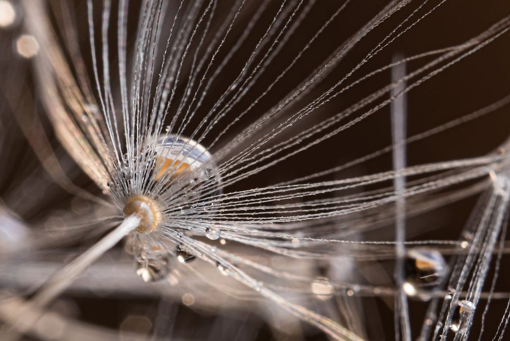 Auch die Tropfen tragen zu dieser verträumten Atmosphäre bei, da sie das Licht reflektieren und so ein Funkeln zwischen den flauschigen Haaren des Löwenzahns erzeugen.