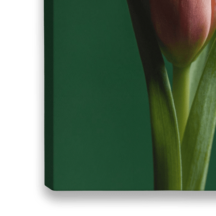 Bestelle dieses Blumen-Wandbild Die Tulpe (mit grünem Hintergrund) von Marjolijn van den Berg als Reproduktion auf Leinwand, Alu-Dibond, als Poster, Fototapete oder Acrylglasbild.