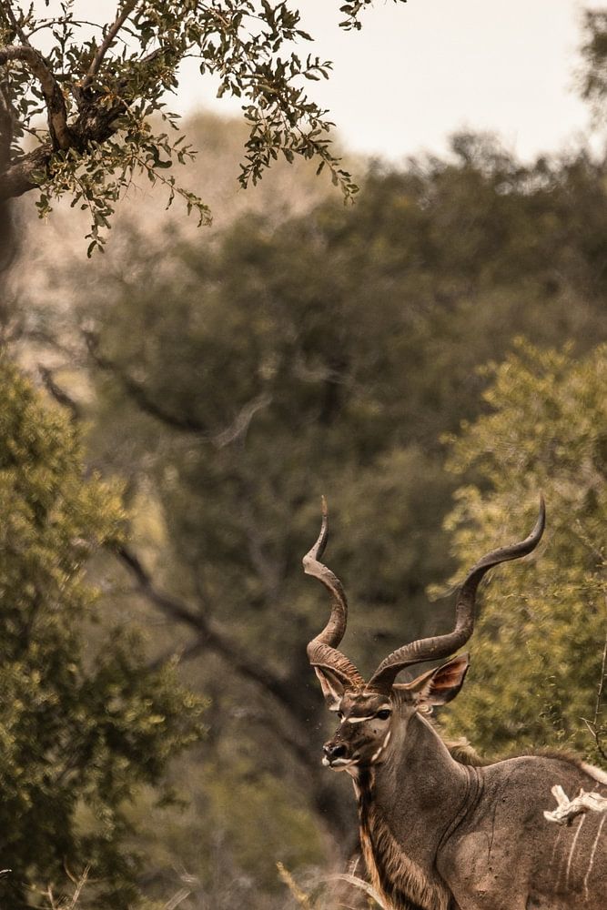 Dieser prächtige Kudubulle begutachtet in aller Ruhe seine Umgebung, bevor er die Staumauer überquert.