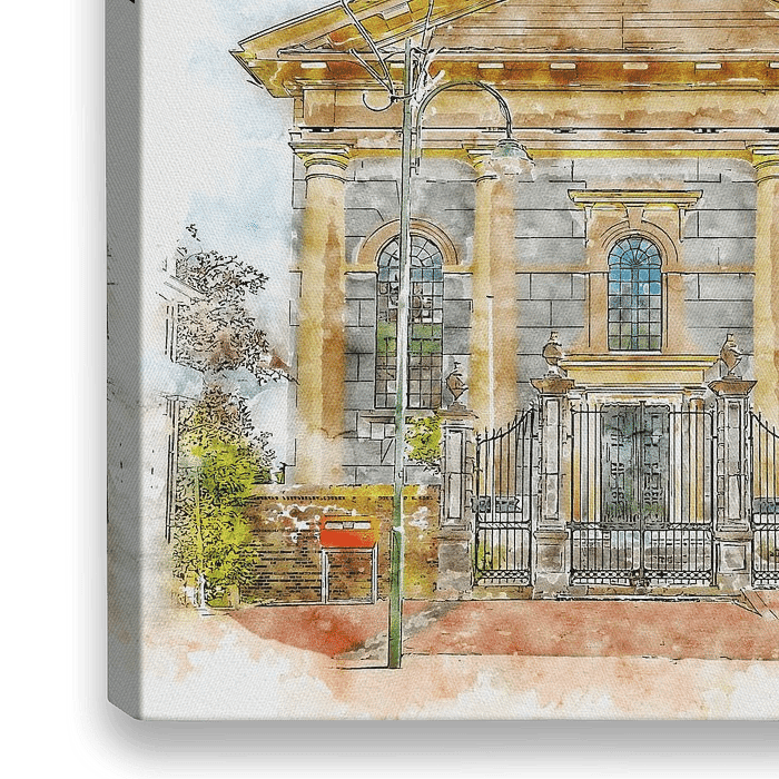 Bestelle diese Malerei Die Weiße Kirche in Steenbergen (Brabant, Niederlande) (Aquarell) von Art by Jeronimo als Reproduktion auf Leinwand, Alu-Dibond, als Poster, Fototapete oder Acrylglasbild.