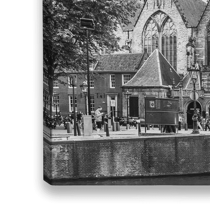 Die Alte Kirche auf dem Oude Zijds Voorburgwal in der Amsterdamer Altstadt schwarz-weiß