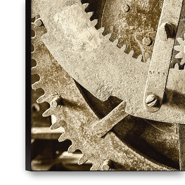 Sepiabild einer verwitterten alten Maschine mit großen Gängen