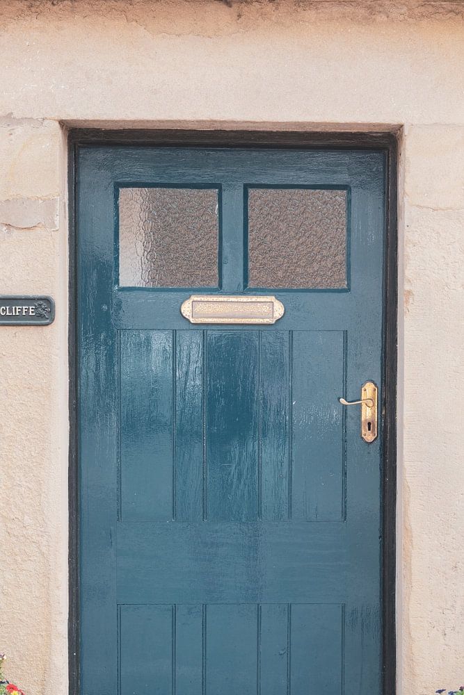 Sommer, Reisen, Reisefotografie, blau, grün, blaugrün, teal, cottage, England, Großbritannien, Straßenfotografie, gelb, Blumen, rustikal, malerisch, romantisch, stimmungsvoll, englisch, Landhausstil
