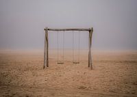 Bestelle dieses Landschafts-Wandbild Die einsame Schaukel am Strand im Nebel von Robby's fotografie als Reproduktion auf Leinwand, Alu-Dibond, als Poster, Fototapete oder Acrylglasbild.