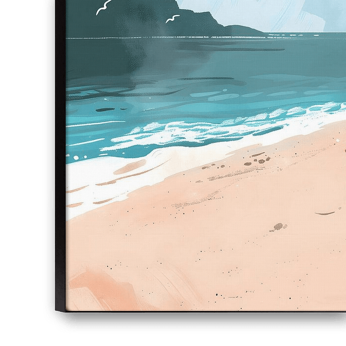 Dieses digitale Kunstwerk ist eine unverzichtbare Ergänzung für Liebhaber der natürlichen Pracht der Küste und verspricht, jedem Raum einen Hauch von Küstencharme zu verleihen. Holen Sie sich die beruhigende Energie des Strandes ins Haus und lassen Sie sich von den ruhigen Wellen dieses bezaubernden Kunstwerks mitreißen.