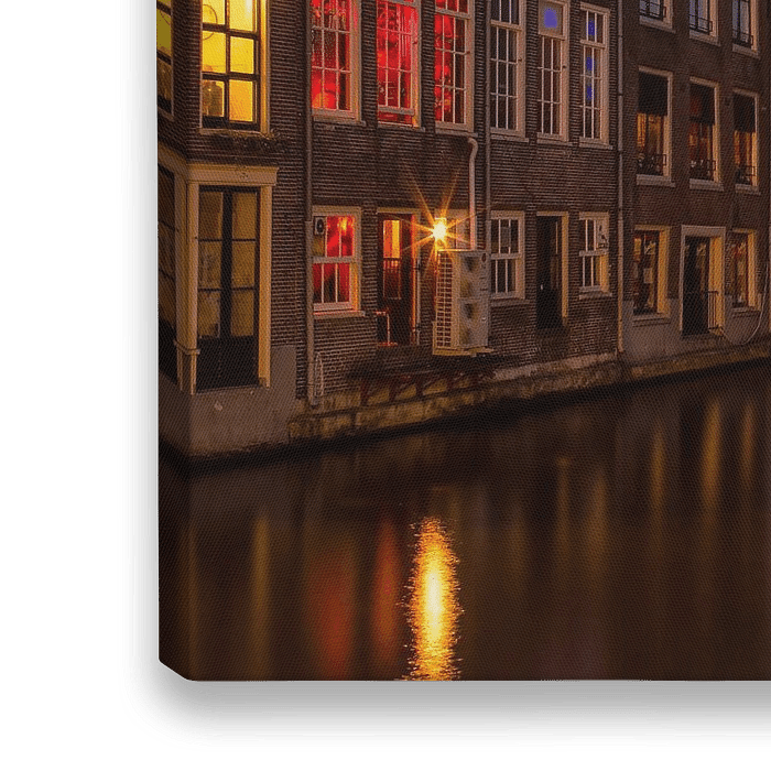 Nachtaufnahme der romantischen Häuser in Amsterdam