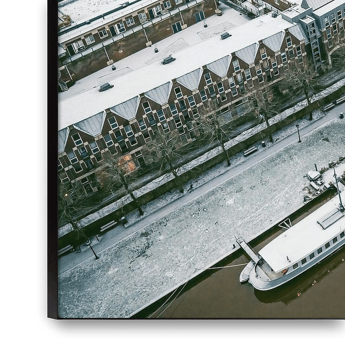 Bestelle das Foto Die verschneite Throbeckegracht in Zwolle an einem kalten Wintermorgen von Sjoerd van der Wal Fotografie als Reproduktion auf Leinwand, Alu-Dibond, als Poster, Fototapete oder Acrylglasbild.