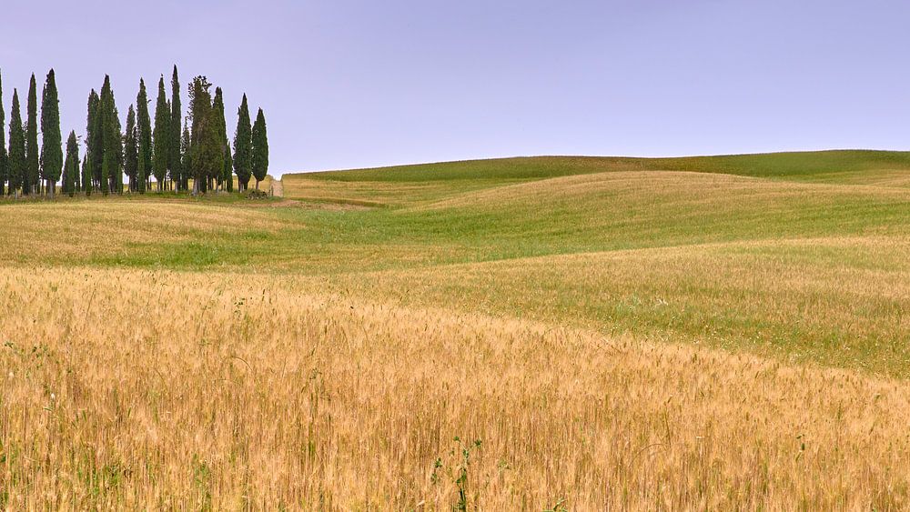 Die weltberühmten Zypressen der italienischen Toskana im Tal des Val d'Orcia südlich von Siena, in der Nähe der Renaissance-Stadt Pienza und der charmanten Stadt San Quirico d'Orcia.