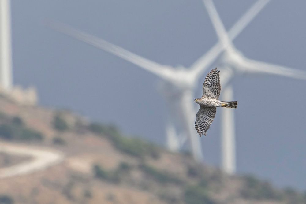 Am frühen Morgen, als sich der Himmel hellblau färbte, erschien er - ein Falke, der anmutig über der Berglandschaft von Tarifa schwebte. Sein scharfer Blick war fokussiert, die Flügel weit geöffnet, als er sich auf den Überflug nach Afrika vorbereitete. Moderne Hindernisse eine Reihe von Windmühlen sie manchmal Vögel herausfordern Ihre Flügel drehen sich langsam im Wind. Im Hintergrund schlängelt sich eine schmale Straße durch die Landschaft, die eigens gebaut wurde, um die Turbinen zu erreichen. Es war ein typisches Bild für den Vogelzug: die uralten Instinkte der Vögel, die sich ihren Weg um die Welt bahnen, verwoben mit dem Einfluss menschlicher Aktivitäten. Die Aufnahme dieses Bildes war wie die Bewahrung eines Stücks Naturgeschichte - ein Moment der Bewunderung und eine stille Warnung. Dieser beeindruckende Raubvogel ist ein Meisterjäger und ein Symbol für Anpassungsfähigkeit. Seine Fähigkeit, Hindernissen wie diesen Turbinen auszuweichen, zeugt von seiner unglaublichen Beweglichkeit. Dennoch bleibt die Bedrohung durch Windkraftanlagen real, vor allem für größere Vögel, die weniger empfindlich sind. Der Kontrast zwischen dem Falken, der natürlichen Welt und der vom Menschen geschaffenen Technologie machte diesen Moment einzigartig.