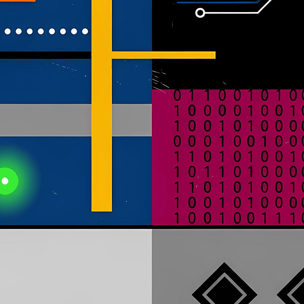 "Digital Syntax" visualisiert die unsichtbare Sprache der Maschinen - eine geometrische Abstraktion, die Kunst, Design und Technologie miteinander verbindet. Durch kühne Farbblöcke, Schaltkreislinien und binäre Codes verwandelt sie die Logik der Berechnung in eine visuelle Symphonie aus Struktur und Rhythmus.