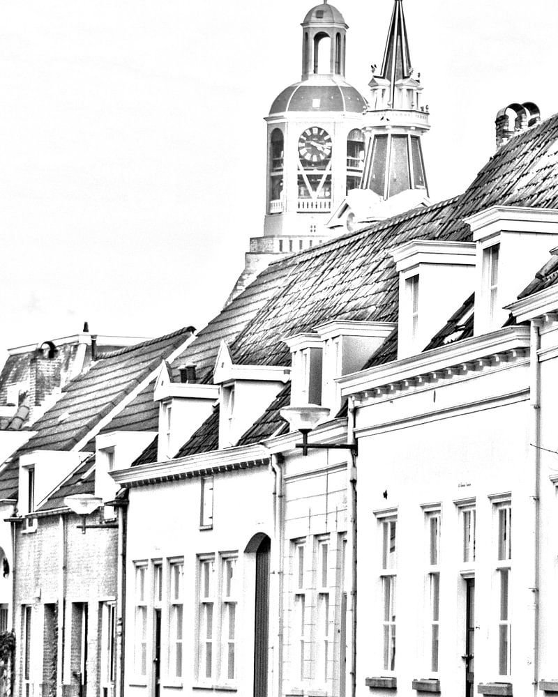 Digitale schets, gemaakt vanuit een foto, van de Peperbus / sint Getrudiskerk in Bergen op Zoom, noord-Brabant