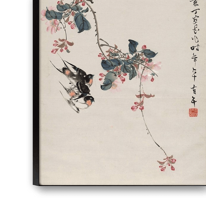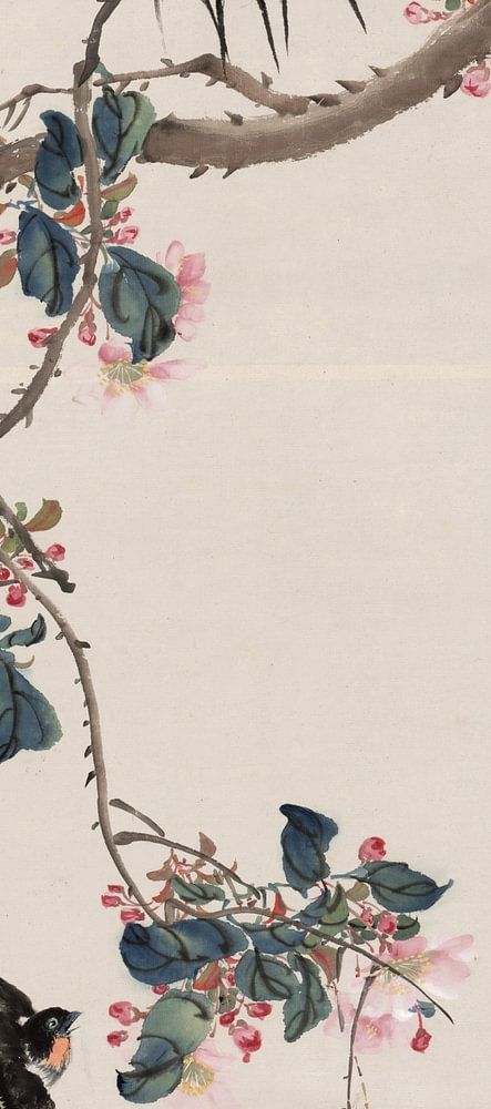 Ding Baoshu,Elster auf Blumenbaum, Chinesische Vögel und Blumen Gemälde