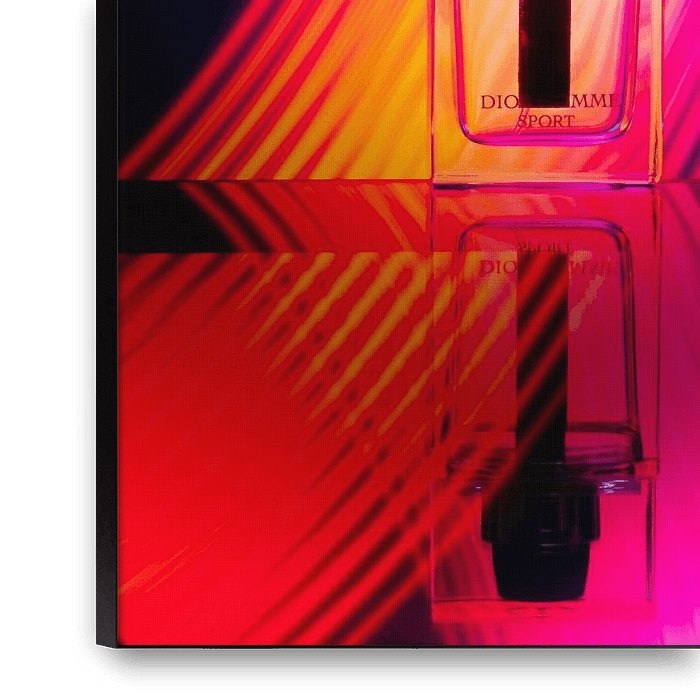Um mich selbst herauszufordern, habe ich beschlossen, diesen Flakon von Dior Homme Sport kreativ und mit viel Farbe in meinem Studio zu fotografieren. Ich bin sehr zufrieden mit den Ergebnissen in verschiedenen Farbschemata. Ist dies zufällig auch Ihr Lieblingsduft? Oder kennen Sie jemanden, der ihn gerne trägt? Schön für die Wand!