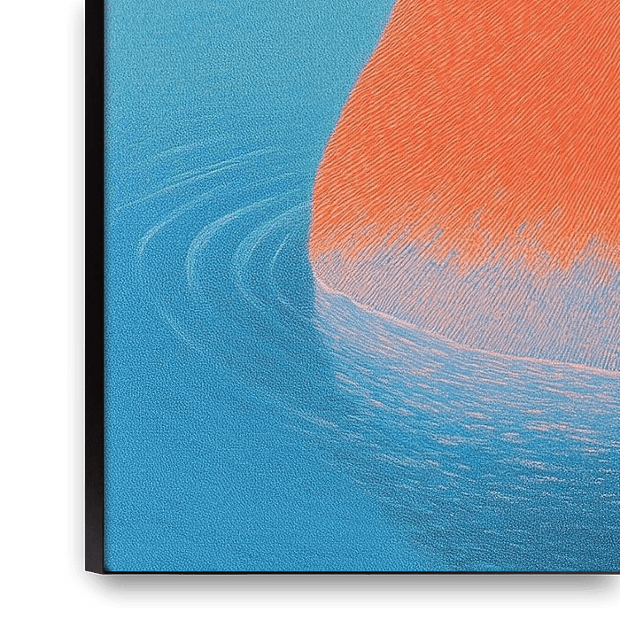 Ihre gewählte Kunst auf Leinwand, gespannt in einem Aluminiumrahmen. Schnell und einfach austauschbar für eine frische Ausstrahlung und ganz nach Ihren Wünschen.