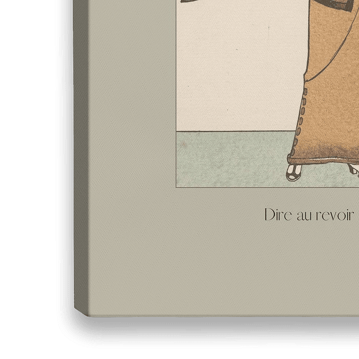 Ein historischer Modedruck mit einem modernen Twist: "Dire au revoir à l'amour". Inspiriert vom Art Deco, einer Stilrichtung, die in den 1920er Jahren entstand. New Businesslikeness gemischt mit modernen klaren Linien und Farben.
