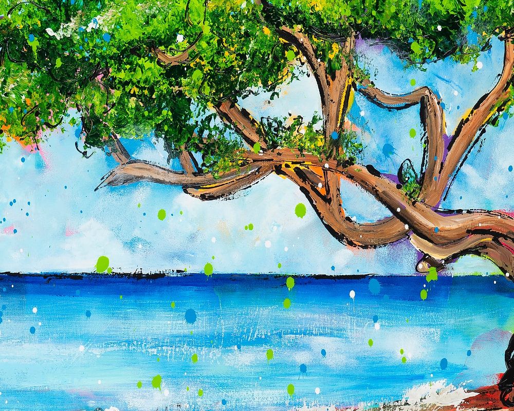 Buntes Gemälde mit einem DiviDivi-Baum. Häufig an den Stränden von Aruba zu sehen.