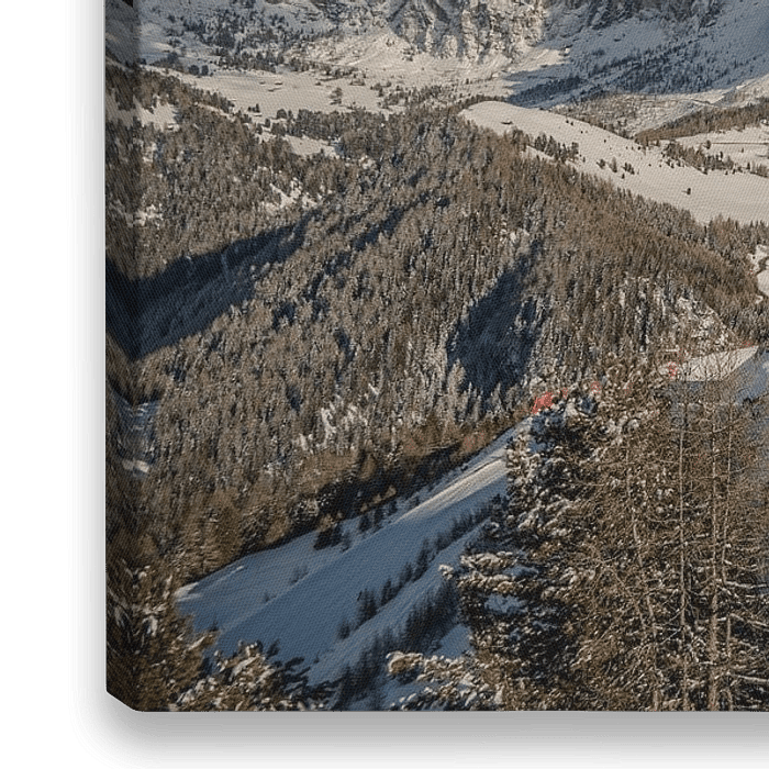 Das sind die Dolemiten, Sellaronda in Italien. Weltkulturerbe der Unesco. Das Foto wurde im Winter mit schneebedeckten Bergen aufgenommen.