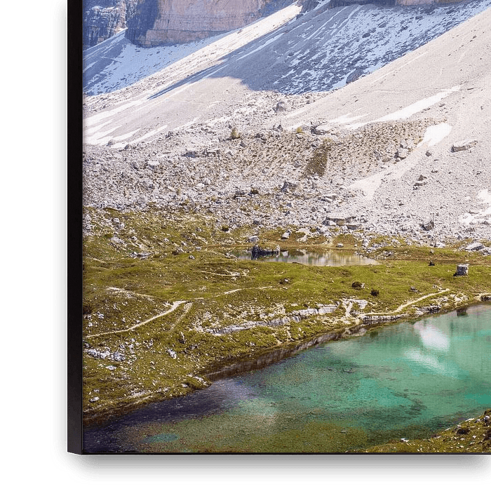 Bestelle dieses Landschafts-Wandbild Dolomiten - Rienzquelle unterhalb der Drei Zinnen von t.ART als Reproduktion auf Leinwand, Alu-Dibond, als Poster, Fototapete oder Acrylglasbild.
