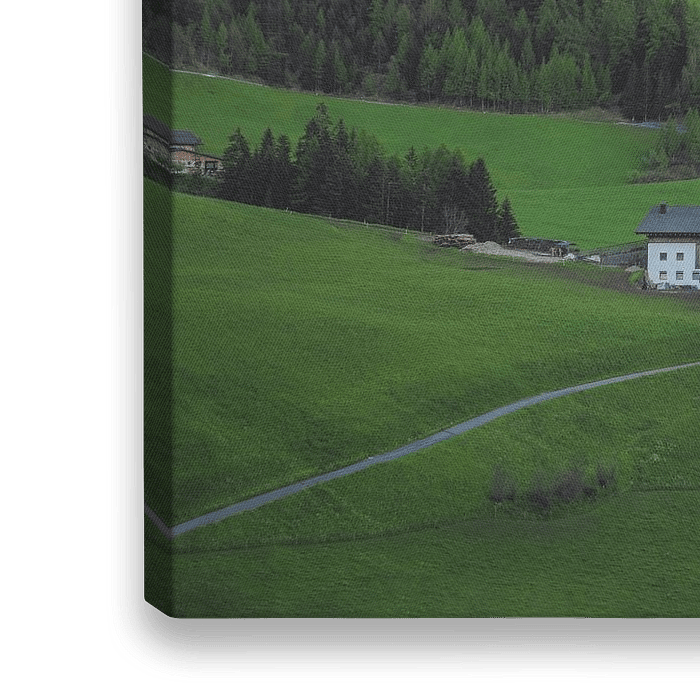 Wundervolles Alpenglühen auf der Geislergruppe vor dem pittoresken Dorf Sankt Magdalena im Vilnößtal.