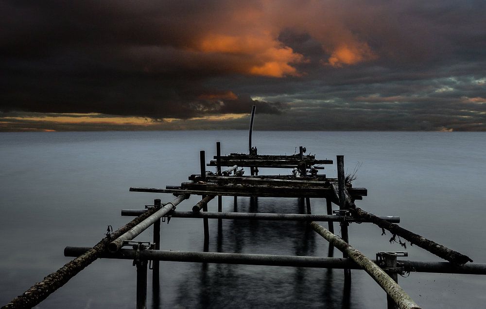Donkere wolken boven een gebroken Steiger von Mario Calma