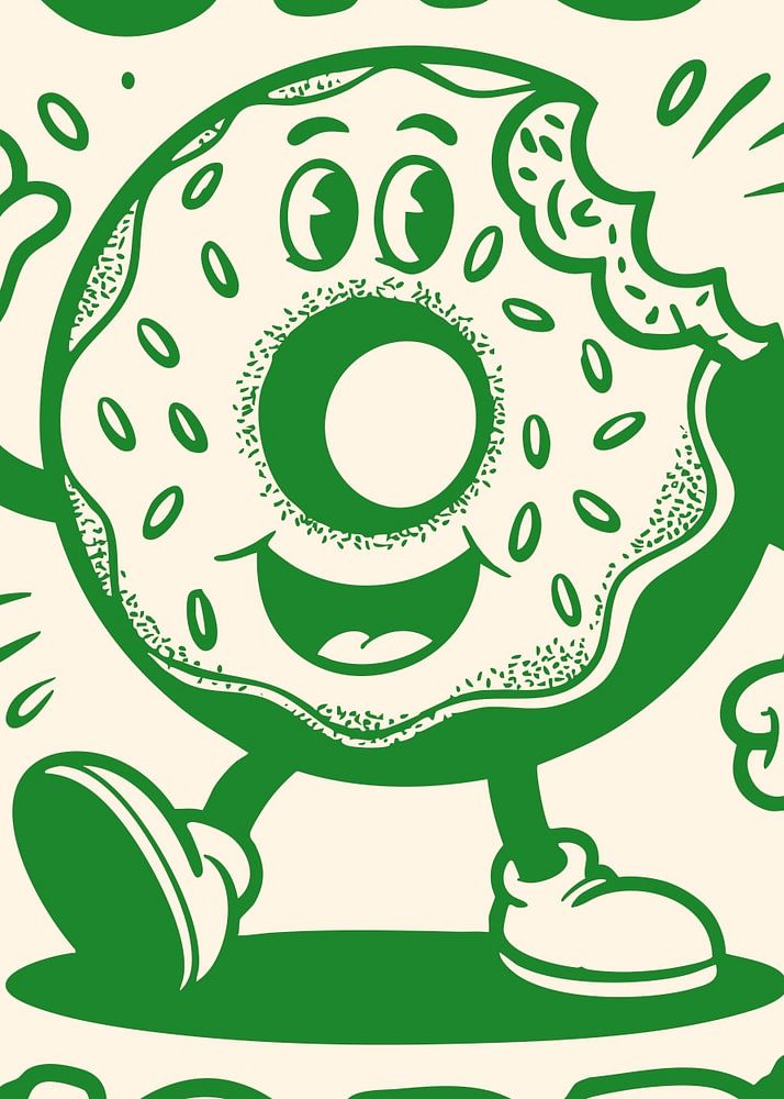 Eine humoristische Illustration eines glücklichen Donuts und der Text "Donut worry".