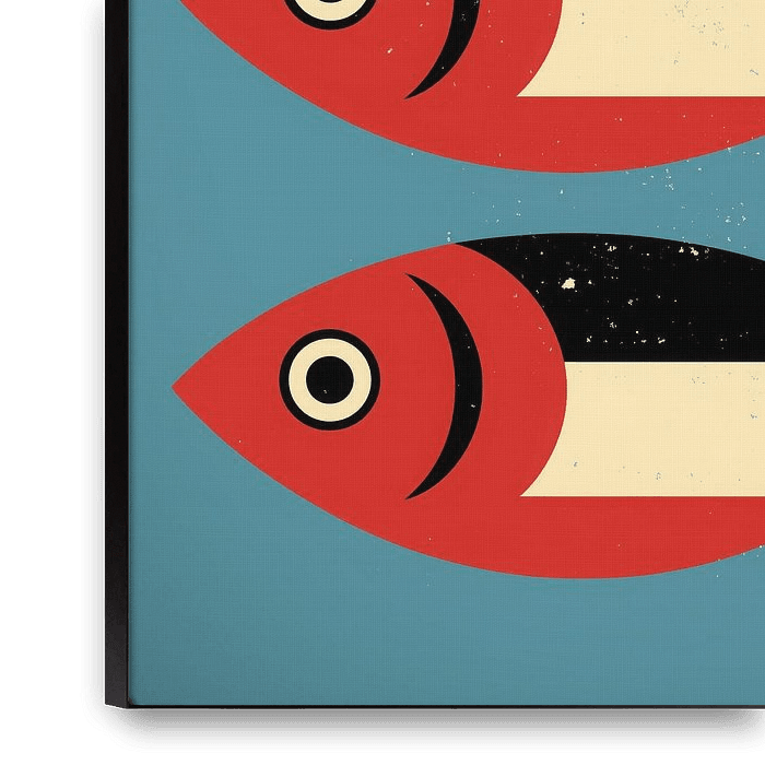 Die dekorative Druckgrafik im minimalistischen Stil der 60er Jahre zeigt drei stark stilisierte Thunfische. Die reduzierten Farben passen gut zusammen und stehen jeder Küche gut. Maritime Motive sind derzeit sehr beliebt, erinnern sie doch an Urlaub und Freizeit in mediterraner Umgebung. Es muss nicht immer Italien sein - manchmal tut…