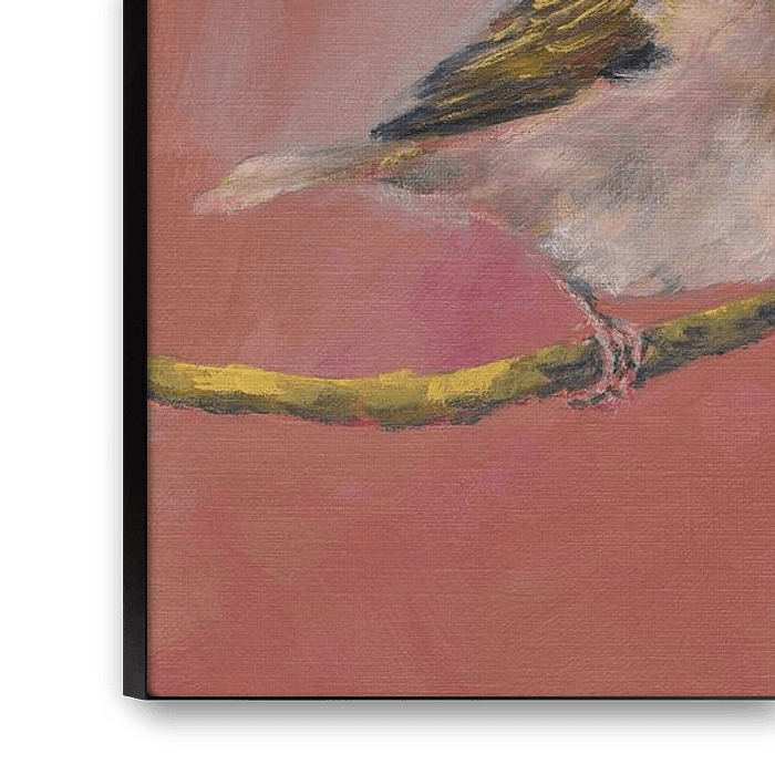 Drei Sperlinge auf einem Ast ist ein handgemaltes Acrylgemälde in einzigartigem Panoramaformat gemalt von der Künstlerin Karen Kaspar.