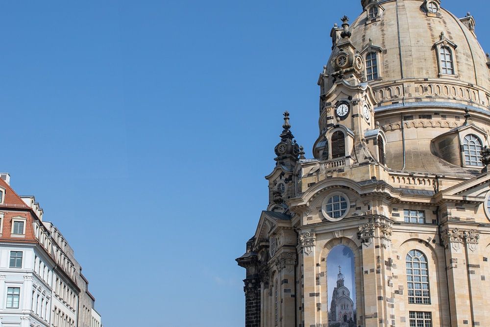 Die Frauenkirche ist ein evangelischer Sakralbau am Neumarkt in Dresden. Der 91 Meter hohe Kuppelbau wurde 1726 bis 1743 durch den Rat der Stadt von George Bähr geschaffen. Nach der Zerstörung 1945 blieb die Frauenkirche eine Ruine, bevor sie 1993 bis 2005 wiederaufgebaut wurde.