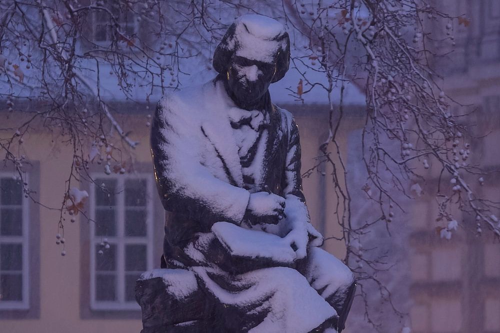 Brühlsche Terrasse Ludwig Richter Denkmal. im Winter