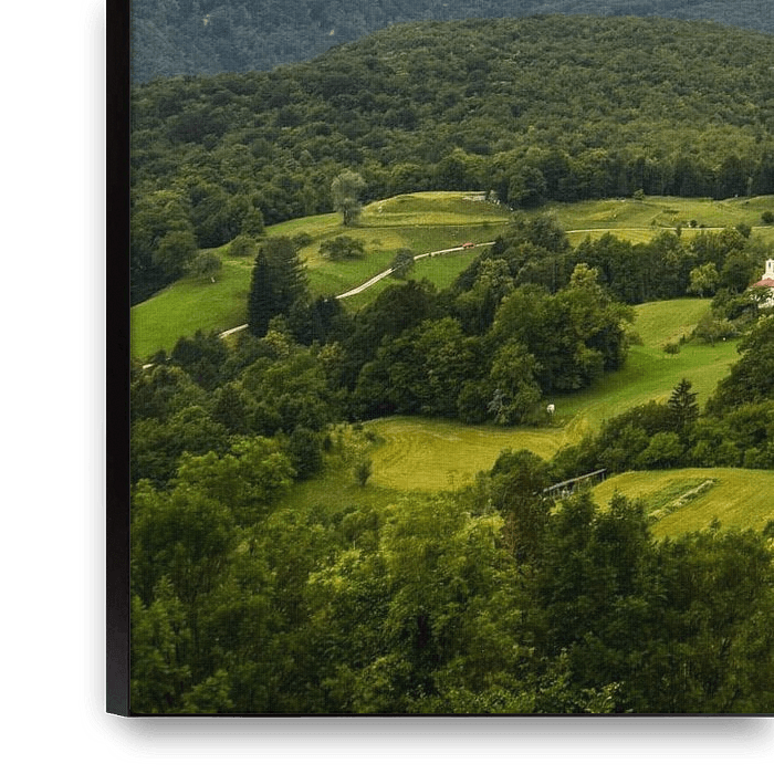 Ihre gewählte Kunst auf Leinwand, gespannt in einem Aluminiumrahmen. Schnell und einfach austauschbar für eine frische Ausstrahlung und ganz nach Ihren Wünschen.