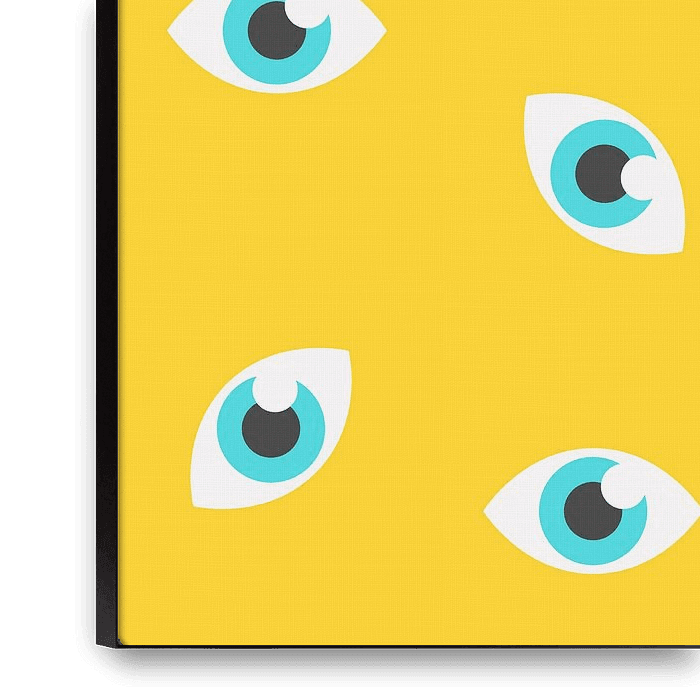 Ein Poster, das dich glücklich macht! Dieses moderne Poster mit Augenmuster verleiht Ihrem Interieur eine echte Erfrischung! Der gelbe Hintergrund harmoniert hervorragend mit dem Blau und Schwarz der Augen. Bringen Sie mit diesem abstrakten Druck die Sonne in Ihr Zuhause.