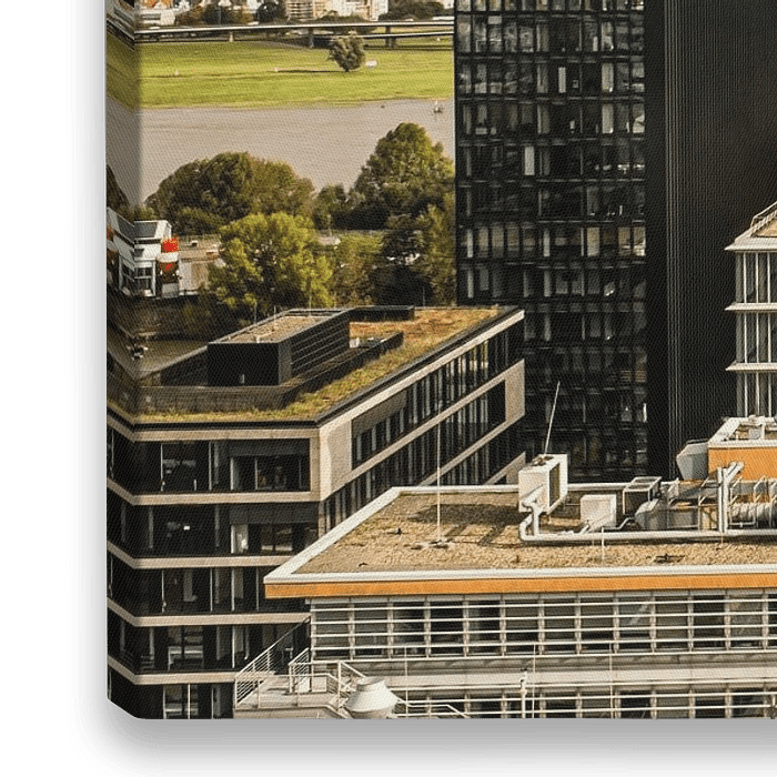 Bestelle das Foto Düsseldorf Rhein mit Medienhafen von Dieter Walther als Reproduktion auf Leinwand, Alu-Dibond, als Poster, Fototapete oder Acrylglasbild.