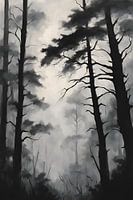 Bestelle dieses abstrakte Wandbild Dunkle Waldmalerei von ComfortQ als Kunstdruck auf Leinwand, Alu-Dibond, als Poster, Fototapete oder Acrylglasbild.