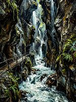 Inspiriert von der Partnach-Schlucht offenbart dieses Impastogemälde einen verborgenen, von reißendem Wasser geformten Canyon. Kräftige Texturen und dramatisches Licht erwecken die rohe Kraft der Natur zum Leben und vermitteln Tiefe, Bewegung und ein intensives Gefühl der Abgeschiedenheit.