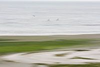 Durch die Arbeit mit langen Verschlusszeiten werden die Dynamik und die Bewegung der Vögel deutlich sichtbar. Dieses Foto wurde von Austernfischern aufgenommen, die auf der schönen Wattenmeerinsel Ameland fliegen.
