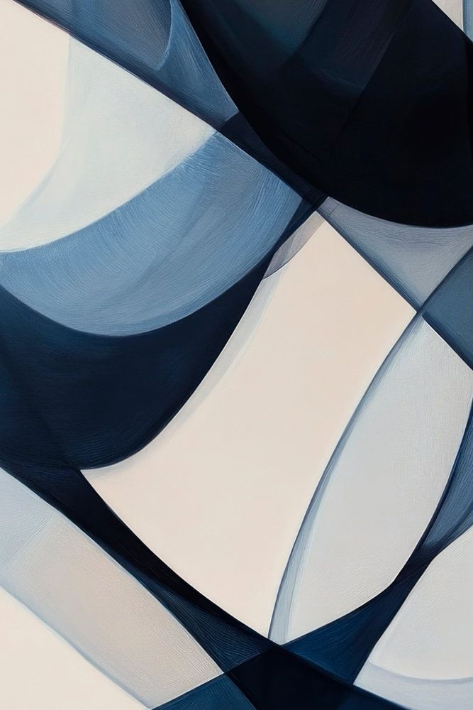 Sanfte, geschwungene Linien in tiefen Blautönen tanzen über einen klaren Hintergrund und erzeugen ein Gefühl von fließender Bewegung. Die harmonische Verbindung von Dunkelheit und Licht verleiht dem Raum eine beruhigende Eleganz. Perfekt geeignet für ein modernes Wohnzimmer, bringt dieses Kunstwerk Ruhe und Stil in jede Ecke.