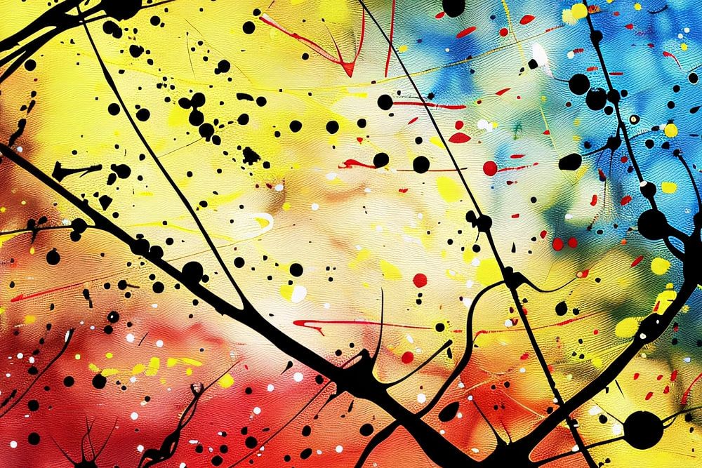 Dieses farbenfrohe abstrakte Kunstwerk ist perfekt für alle, die ausdrucksstarke und dynamische Designs lieben. Die leuchtenden Gelb-, Rot- und Blautöne springen von der Leinwand ab und erzeugen ein Gefühl von Bewegung und Energie. Die schwarzen Linien und Punkte, die nach dem Zufallsprinzip über die Leinwand verteilt sind, verleihen dem Werk eine einzigartige Balance und Textur. Dieses Gemälde ist ideal, um jedem Raum, wie z. B. einem Wohnzimmer oder Büro, eine moderne, lebendige Atmosphäre zu verleihen. Mit seinen abstrakten Formen und kontrastreichen Farben ist es ein auffälliges Kunstwerk, das für Gesprächsstoff sorgt und inspiriert. Perfekt für Liebhaber moderner und ausdrucksstarker Kunst!