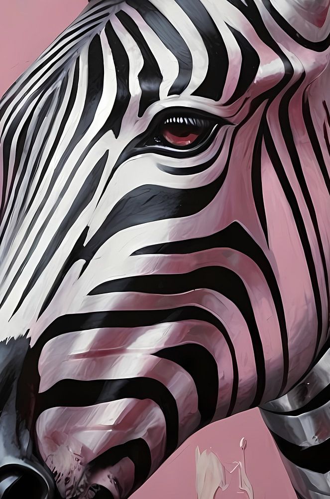 Diese einzigartige Kreation, bei der ein Zebra im Mittelpunkt steht, ist ein echter Blickfang für jedes Interieur. Die kontrastreiche Farbpalette aus Schwarz, Weiß und Silber auf rosa Hintergrund verleiht dem Raum eine moderne und zugleich verspielte Dimension. Die markanten Tropfen, die von dem Zebra abzulaufen scheinen, verleihen dem Kunstwerk einen dynamischen Charakter und könnten leicht zum Tagesgespräch werden. Perfekt für Kunstliebhaber, die ihre Liebe zu Tieren und ihre Leidenschaft für einzigartige Kunst miteinander verbinden möchten. Das Kunstwerk strahlt Kraft aus, hat aber durch die Verwendung von Farbe und Stil auch eine weiche Ausstrahlung, was es vielseitig einsetzbar macht, vom modernen Wohnzimmer bis zum inspirierenden Büro.