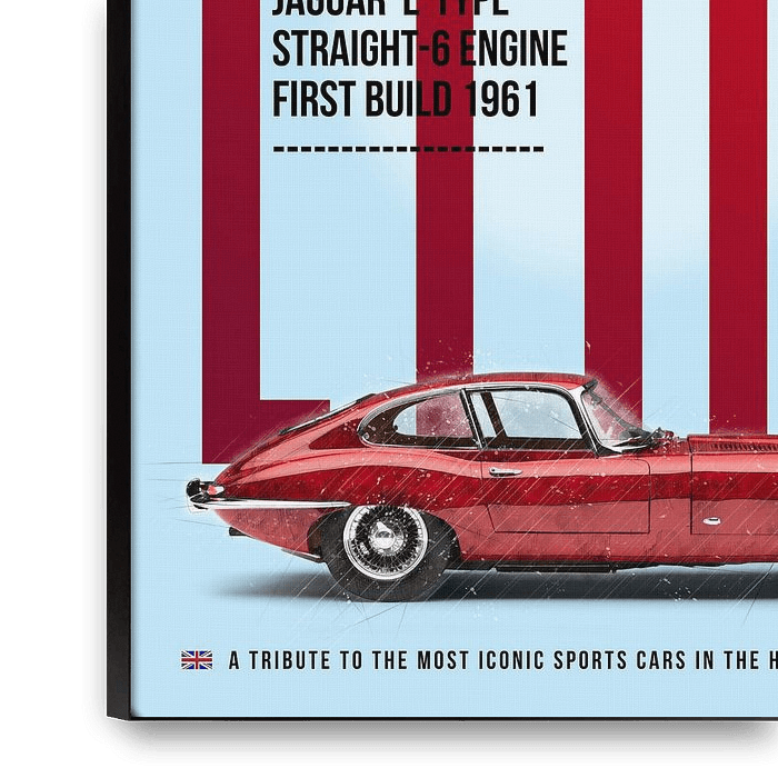 Bestelle diese Illustration E-Type Tribute von Theodor Decker als Reproduktion auf Leinwand, Alu-Dibond, als Poster, Fototapete oder Acrylglasbild.