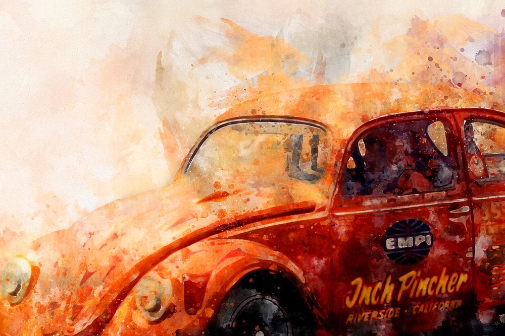 Illustration aus einer Serie von legendären Dragstern und Hot Rods. Gemalt mit Aquarellfarben auf Papier.