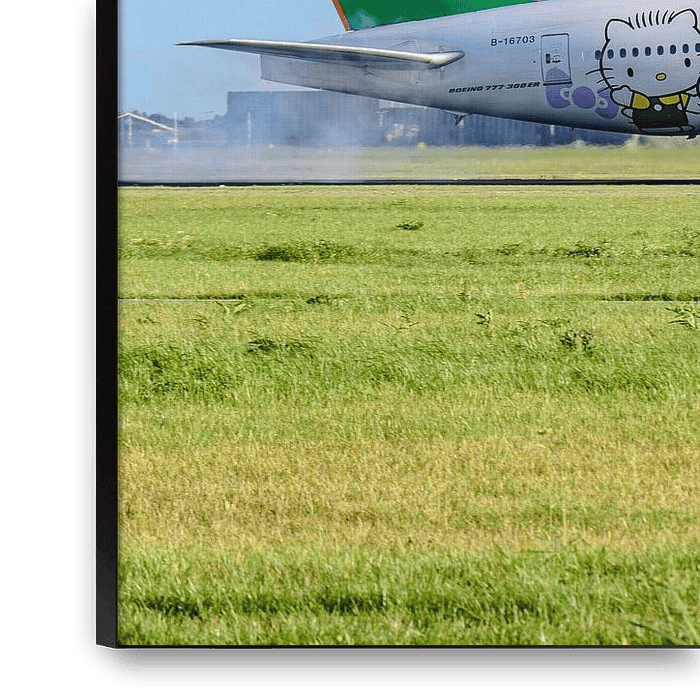Bestelle das Foto EVA AIR Boeing 777 in Hello Kitty Sanrio Family-Lackierung. von Jaap van den Berg als Reproduktion auf Leinwand, Alu-Dibond, als Poster, Fototapete oder Acrylglasbild.