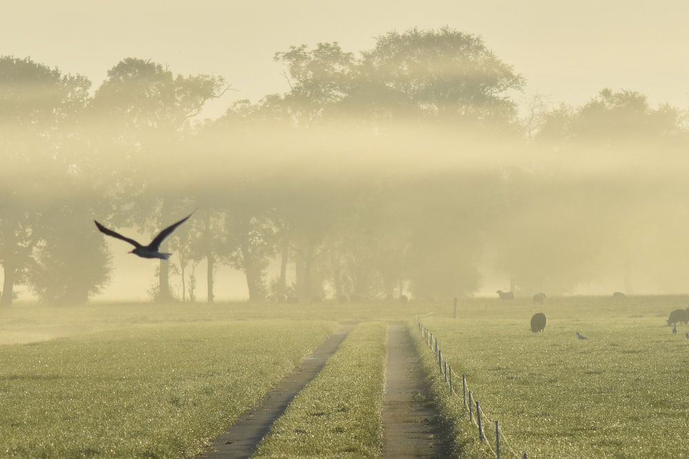 Als der dichte Nebel verschwindet, bleiben nur noch wenige Schwaden übrig. Sie schweben zwischen Himmel und Erde und es scheint, als ob die Vögel mit dem Nebel spielen.