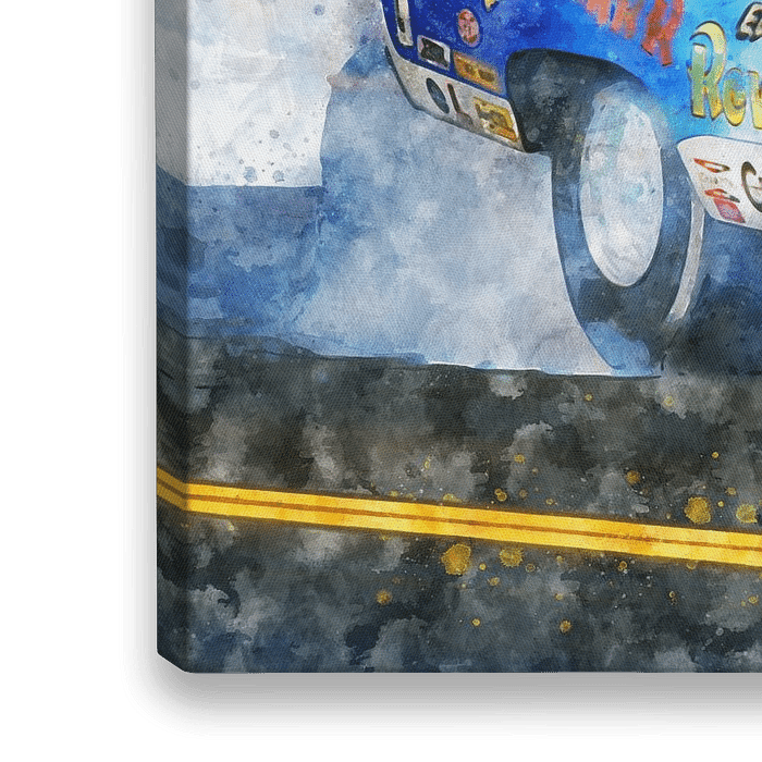 Illustration aus einer Serie von legendären Dragstern und Hot Rods. Gemalt mit Aquarellfarben auf Papier.