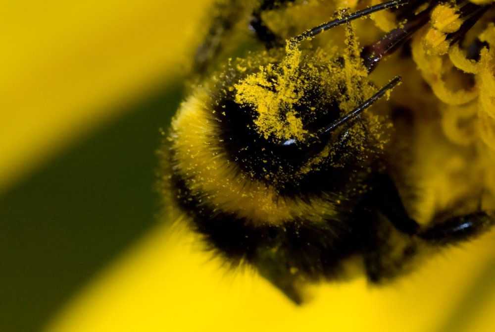 Weidehommel die zich tegoed doet aan een feestmaal.