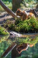 Hunger und Durst eines Eichhörnchen. In der Sonne saß Speisen und Getränke genießen. Blieb ziemlich lange an dieser Stelle sitzen. Schönes Tier zu sehen.