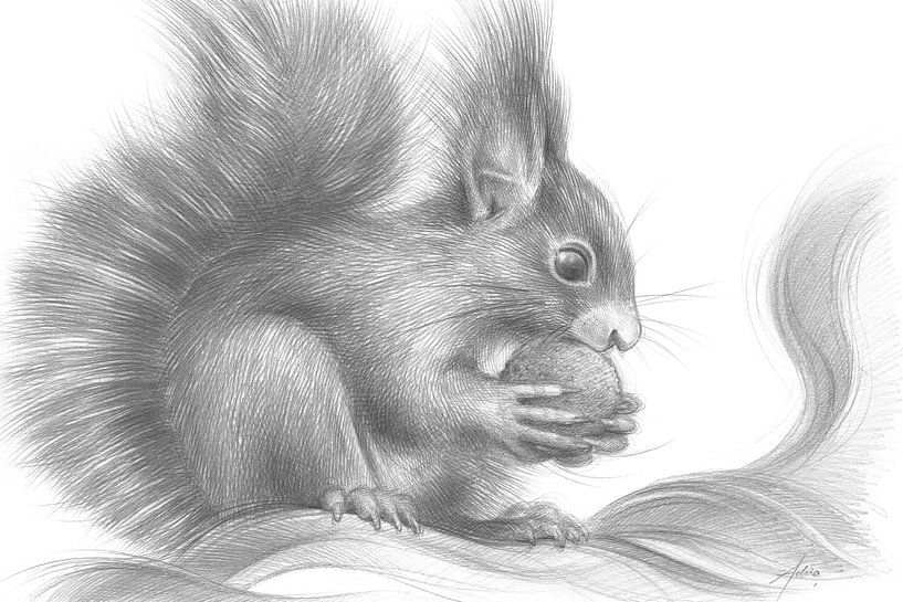 Eichhörnchen mit einer Nuss von Adriana Müller